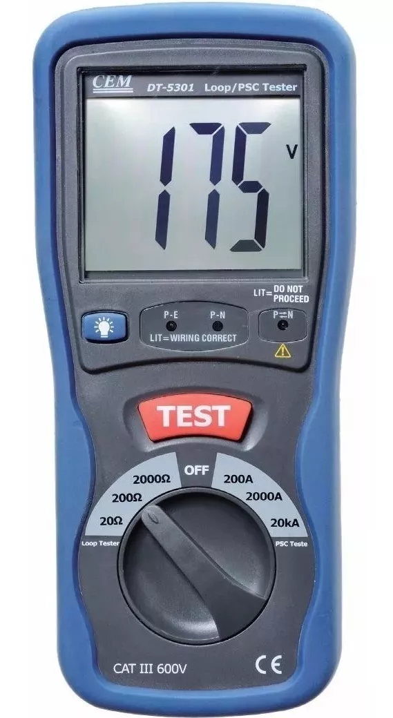 The DT-5301 CEM LOOP/PSC Multimeter Tester is a device designed primarily for measuring loop and short circuit (PSC) current. Here is precise information about its main features: