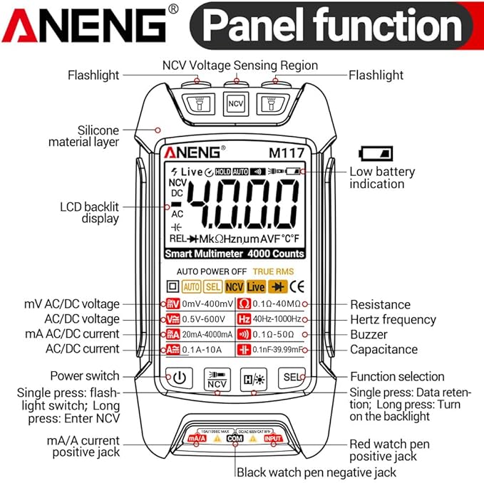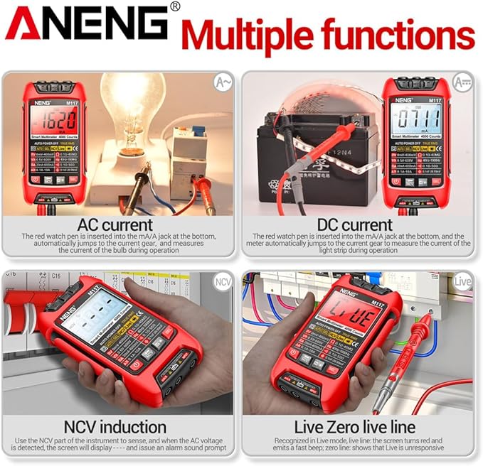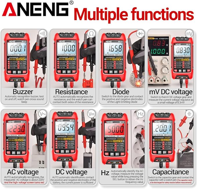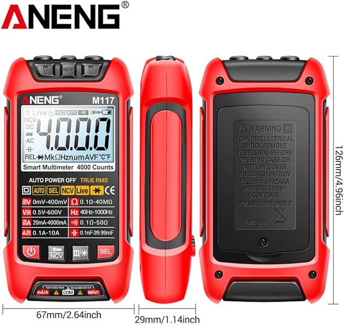 The ANENG M117 Smart Digital Multimeter is designed to meet the needs of technicians and hobbyists, offering a perfect combination of accuracy, durability and advanced technology.