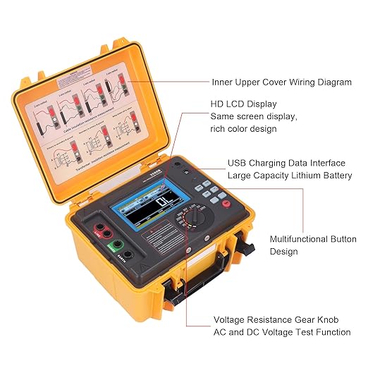 Wide Resistance Range: Capable of measuring insulation resistances from 0.1 MegaOhms to 10 teraohms.