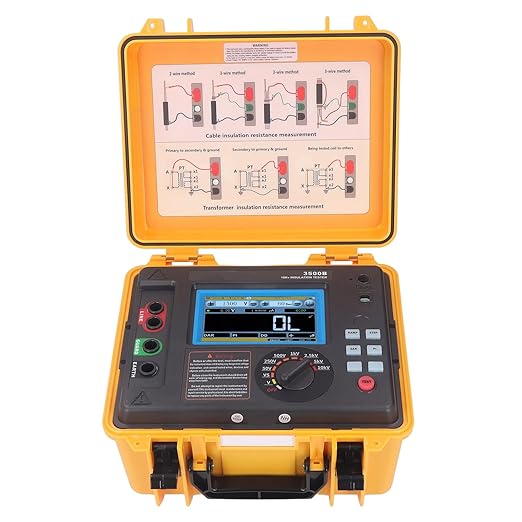 The ETCR 3500B is a professional insulation resistance meter designed for high-precision testing in electrical and industrial systems. With a measurement range of up to 10 kV, this equipment is ideal for ensuring the safety and reliability of electrical installations, industrial machinery, transformers, high-voltage cables and more.