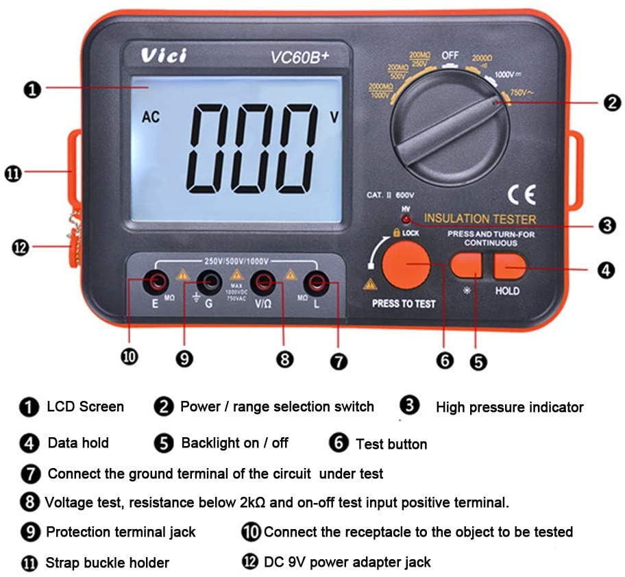 VC60B+ is an accurate, reliable, and easy-to-use insulation resistance tester. Drive symbol display, easy to use.
