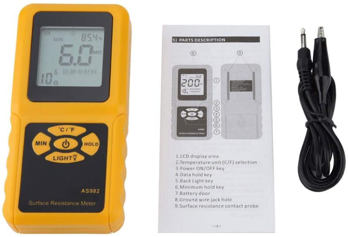1. AS982 can measure the resistance value on an abject surface by placing two parallel electrodes near the surface of the object to be measured.