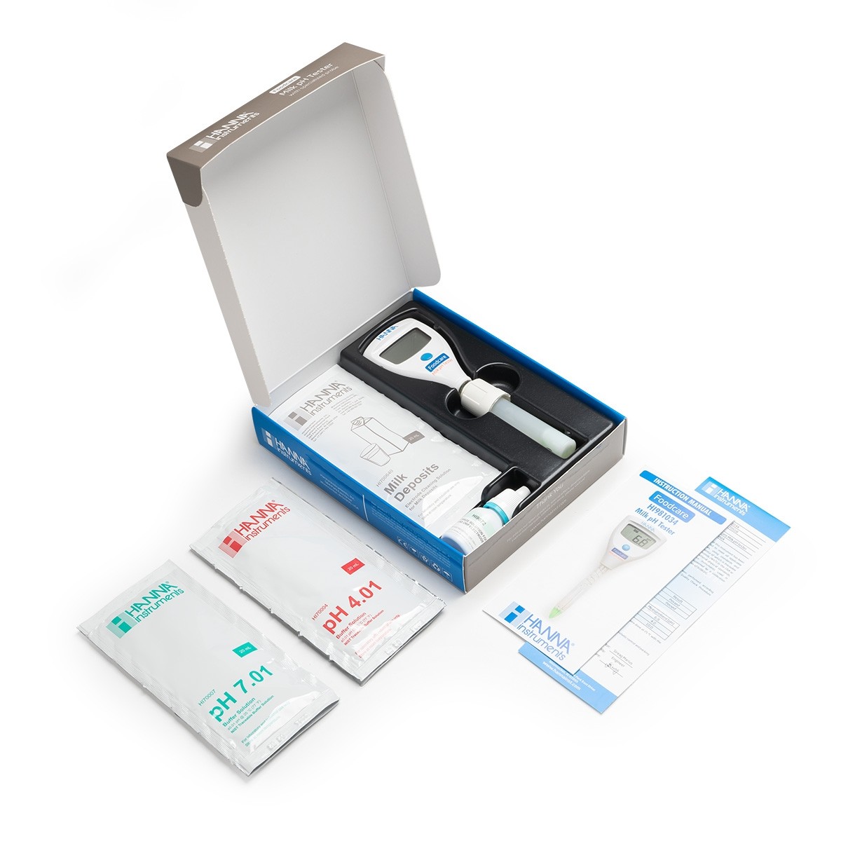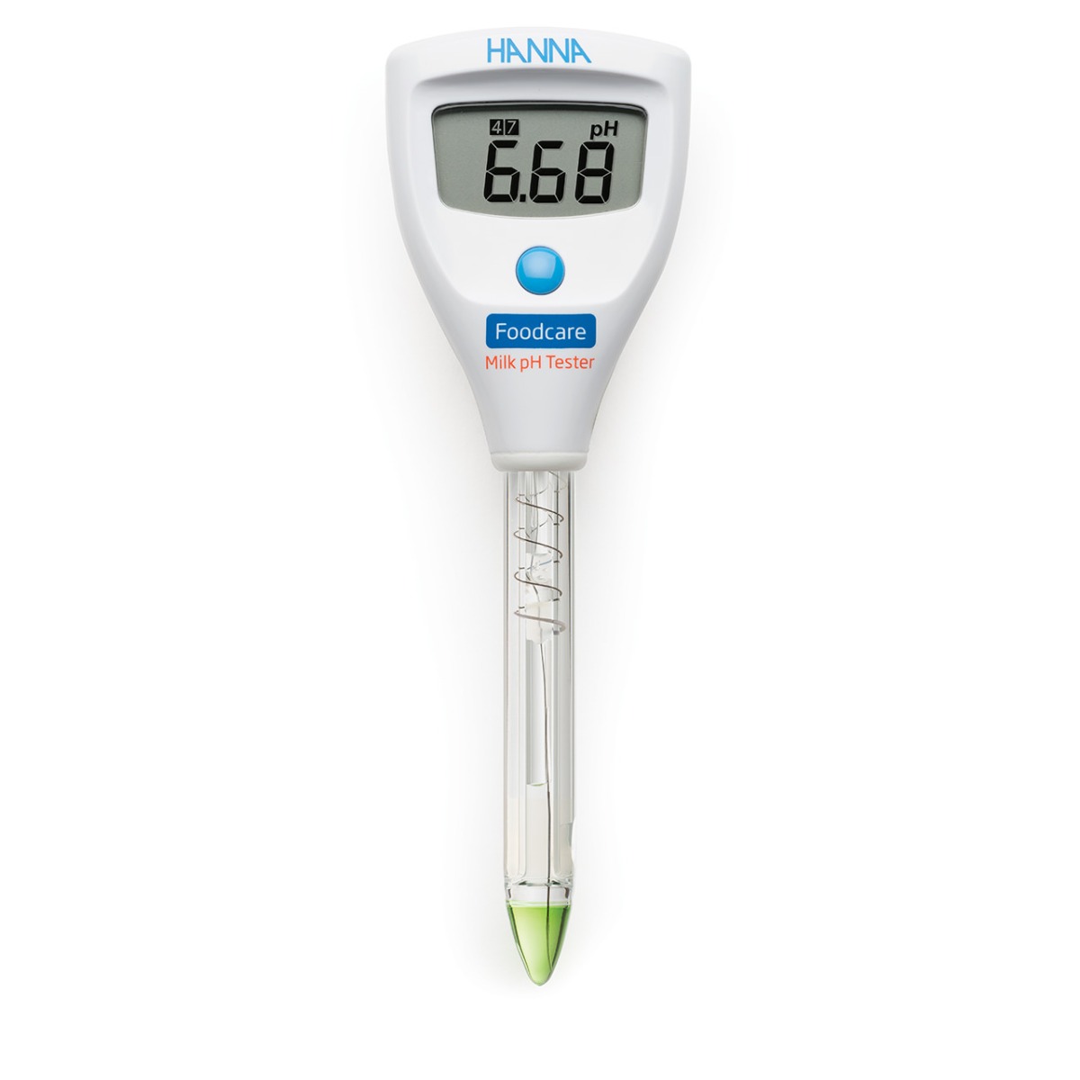 Designed to bring simplicity to pH testing during milk processing, the HI981034 Milk pH Tester is designed to withstand the harsh environment of milk processing plants. The built-in probe features an open junction, a glass conical tip, and a glass body that make it ideal for measuring milk pH during processing.
