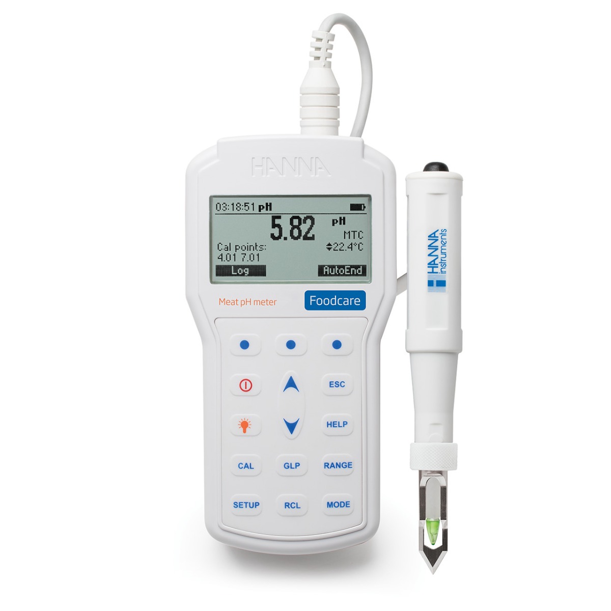 The HI98163 is a portable, rugged, and waterproof food pH meter that measures pH and temperature using the FC2323 Meat pH Electrode with a stainless steel piercing blade. This professional and waterproof meter meets IP67 standards. The HI98163 is supplied with all the accessories needed to perform a pH/temperature measurement and comes packaged in a durable thermoformed carrying bag that keeps meters, probes, and calibration standards safe in place.