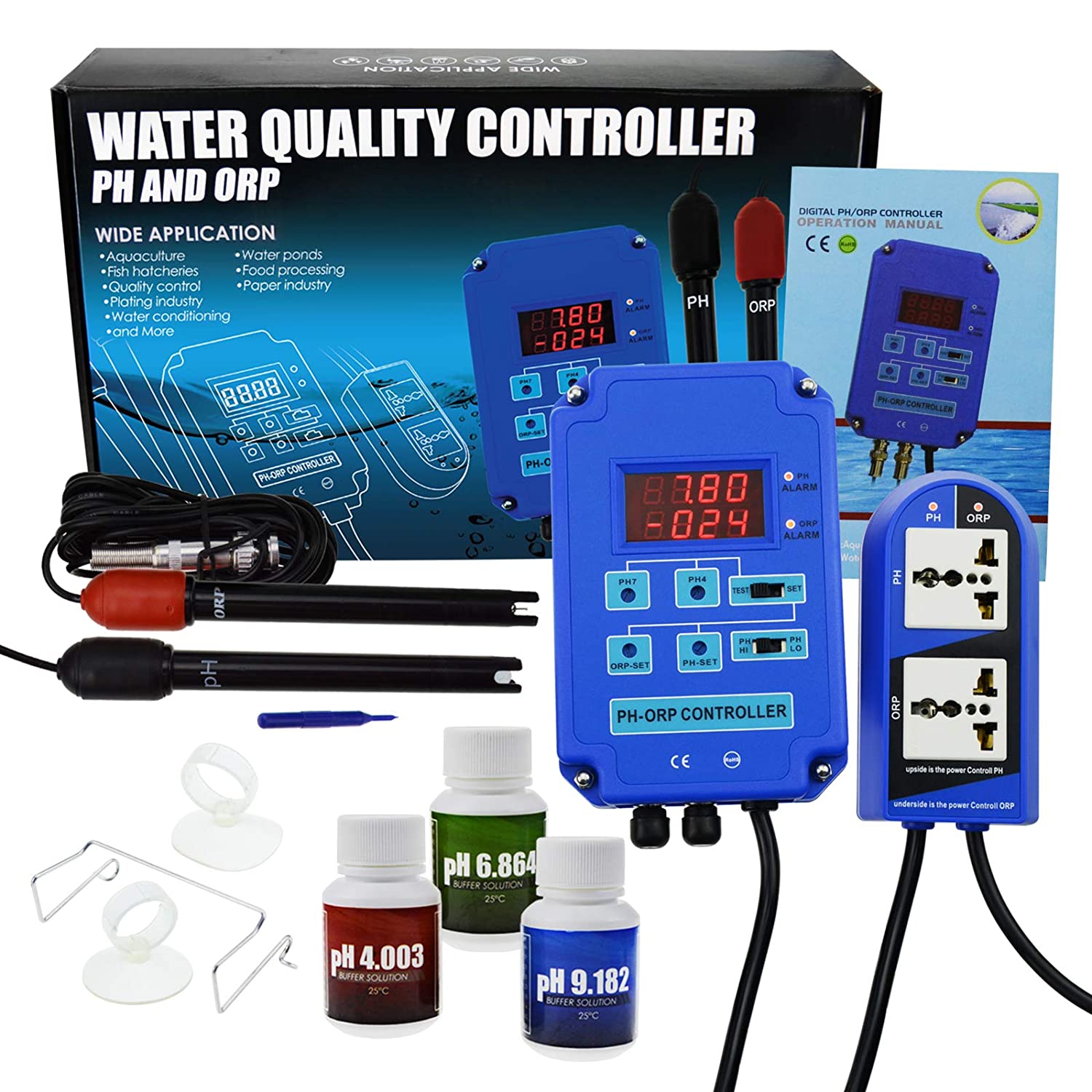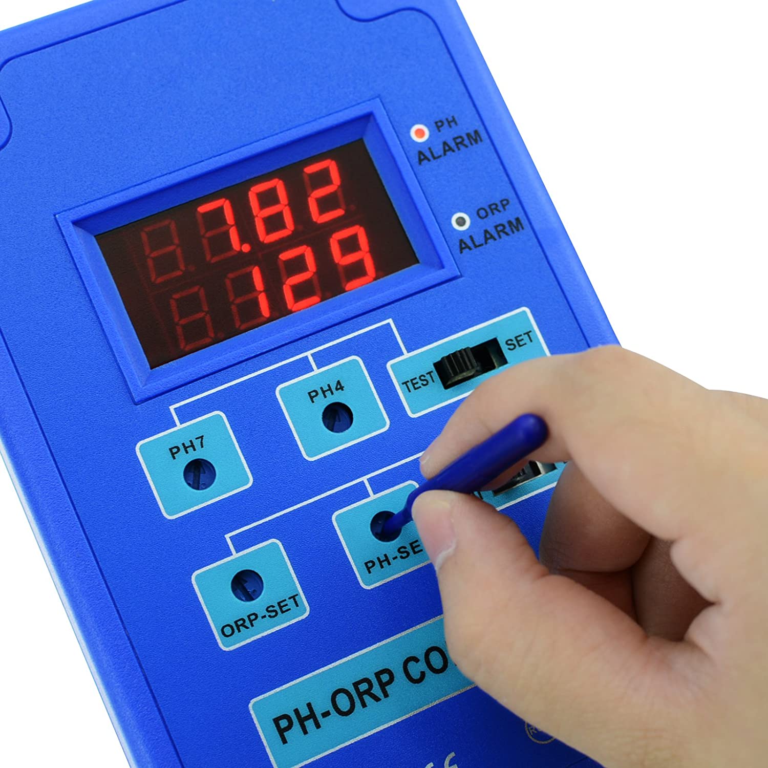 your own device (e.g., oxygen pump, CO2 regulator, O3 ozonator or other pH and ORP generation devices) into the corresponding PH or ORP output power outlet, you can set the desired pH or ORP value on this monitor controller to activate your devices to turn on or off.