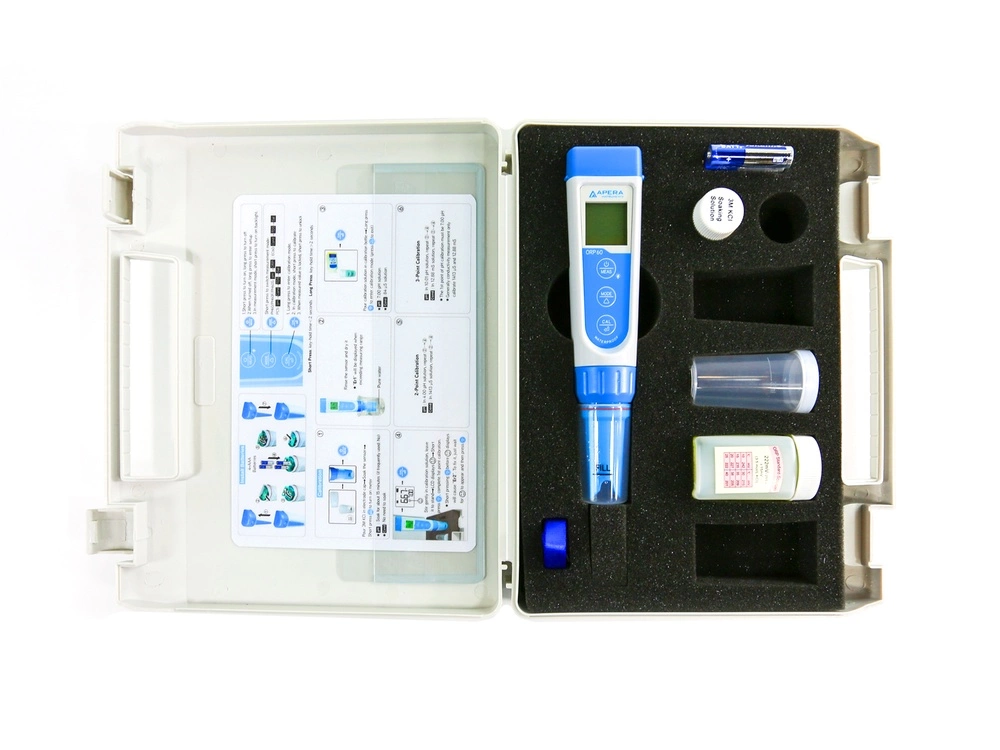 The Apera Instruments ORP60 tester is designed for reliable monitoring of ORP (redox) in regular water solutions, e.g. swimming pools and water treatment. The ORP Platinum Probe is replaceable and easy to install, so you don’t have to buy a whole new meter once the probe is aged.