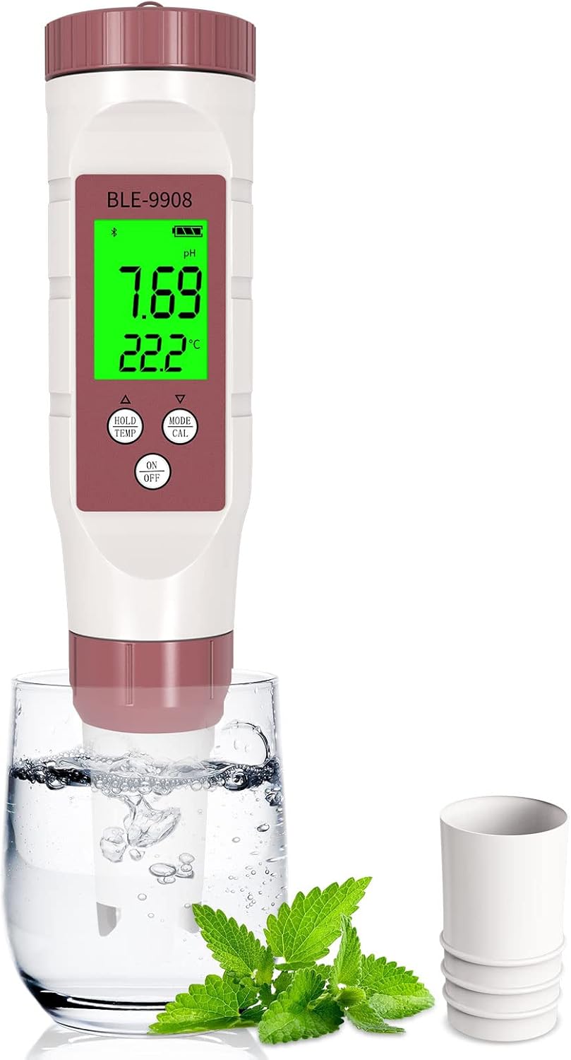 pH meter with Bluetooth Powered by YINMIK mobile app, professional measurement of PH/TDS/EC/Salinity/TEMP(/). Suitable for domestic drinking water, hydroponics, laboratory, aquarium.