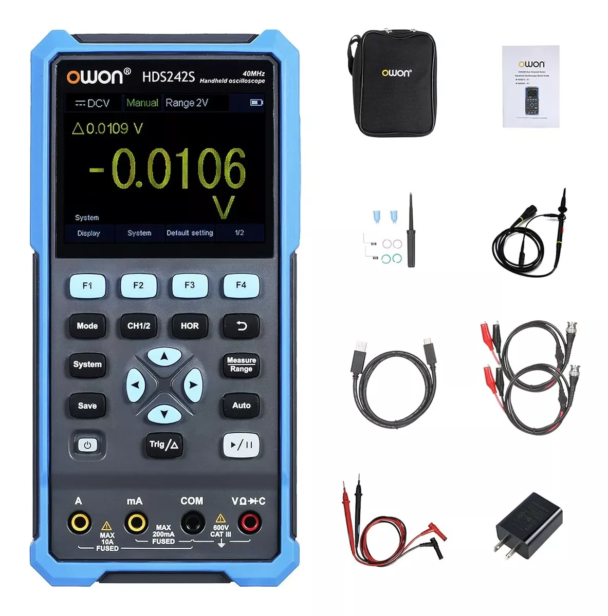OWON HDS242S 3 in 1 portable digital oscilloscope waveform generator multimeter 2CH USB type C 40MHz 3.5 LCD test meter.