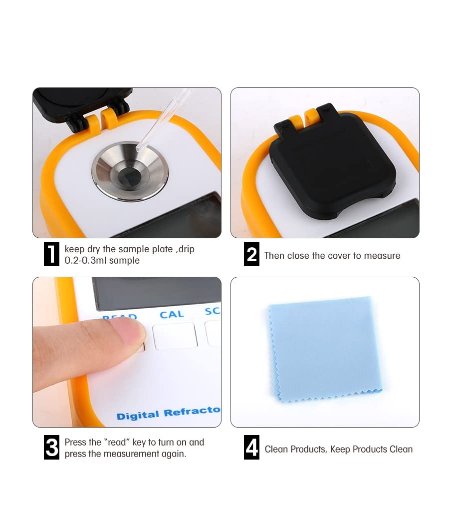 Make sure the refractometer is clean and dry. If necessary, wipe the prism with a soft cloth to avoid contamination.