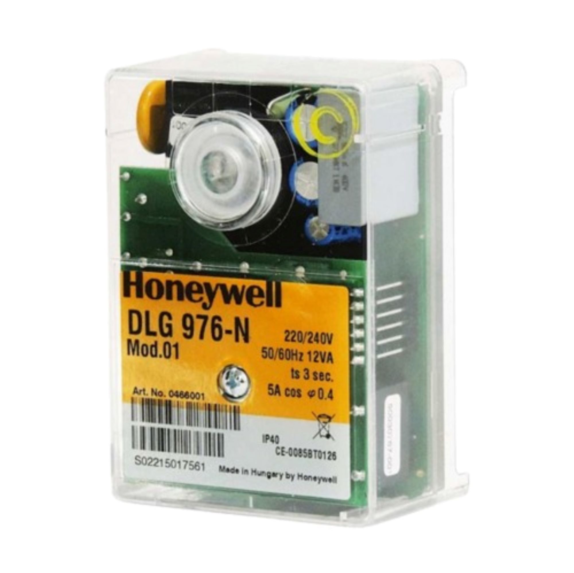 The Honeywell Satronic DLG 976-N flame control is a device used in industrial burner systems and boilers to control and monitor the combustion process. It provides monitoring and safety functions to ensure safe and efficient operation of the equipment.